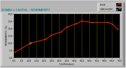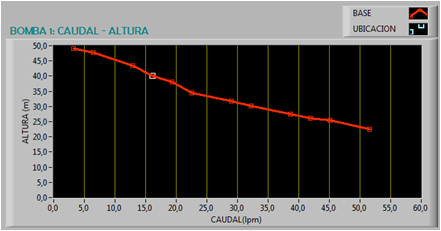 El comportamiento de una bomba hidráulica viene especificado en sus curvas características, siendo estas una relación de caudal proporcionado por las bombas en relación con otros parámetros entre los cuales se tiene altura (H), potencia hidráulica (Ph) y rendimiento (N). Estas curvas se obtienen experimentalmente gracias al banco de pruebas y se representan gráficamente en el software SCADA.