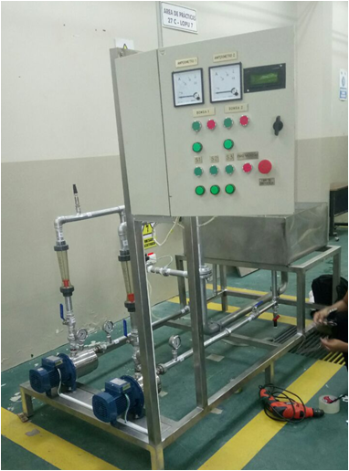 Abstract: This article shows a testing bench developed and installed in the Escuela Superior Politécnica in the Laboratorio de Operaciones Unitarias ESPOL with the objective of demonstrating Chemical Engineering students, through experimentation, the correct way of operating pumps, on series or parallel layouts, inferring its conclussions on each case. This objective has been attained by performing data collection through it's SCADA software on LabVIEW, that allows the user to set the flow and get, automatically through its software, the pressure. The design, structure, bothmetalworking and electrical and electronic equipment, control panel and programming, was conceived for this project. The methodology applied in this project is experimental and inductive. It's experimental due to its structural design, hydraulic electric and electronic implementation, enabling the drive through its control panel or software. It's inductive due to the inferred results through practice on the testing bench; it has been possible to obtain data that favors the optimization of the system.