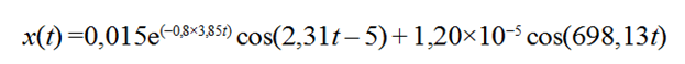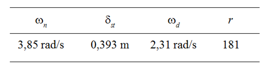 Se conoce que la masa del motor es de 260 200 kg, que el desplazamiento inicial es de x0 = 0,015 m según recomendaciones del fabricante de los calzos [10], la aceleración de y la relación de amortiguamiento sistema subamortiguado o raíces complejas conjugadas puede determinar una serie de parámetros como se muestra en la tabla 1 los cuales permiten determinar la respuesta total del sistema.