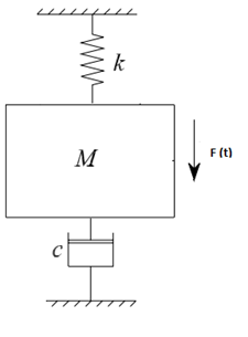 Promediando los valores de máximos de amplitud (A) correspondientes a los valores de tiempo (s) de 0,018; 0,025; 0,033 se puede obtener un valor de fuerza de 152867,84 N por lo que la expresión F(t) = F0 puede ser escrita de la siguiente forma F(t) = 152 867,84 cos(698.13 t) la cual describe un movimiento armónico [8], [9]. Modelando un sistema de 1GDL con vibración forzada amortiguada (véase Fig. 5).