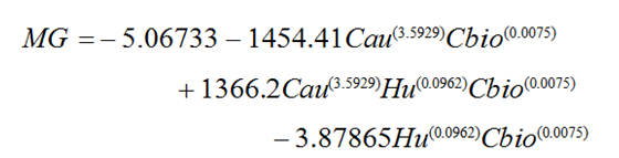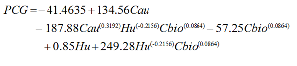 Para la estimación del poder calórico del gas (PCG), se puede observar en la ecuación 14: