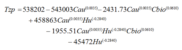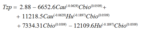 Para la estimación de la temperatura de la zona de pirolisis (Tzp), se puede observar en la ecuación 13: