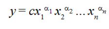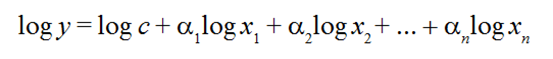En particular, si a ambos miembros del modelo monomial (1), como se puede observar en la ecuación 1:
