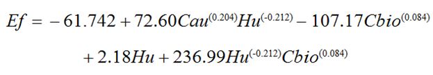 Para la estimación de la eficiencia (Ef ), se puede observar en la ecuación 3: