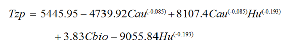 Para la estimación de la temperatura de la zona de pirolisis (Tzp), se puede observar en la ecuación 5:
