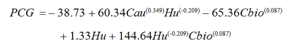 Para la estimación del poder calórico del gas (PCG), se puede observar en la ecuación 6: