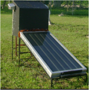 Para el desarrollo del presente trabajo, se utilizó un secador solar tipo indirecto (véase Fig. 2), el cual fue construido en la Universidad de Quintana Roo. La cámara de secado consta de tres charolas para la colocación del producto, además de dos ventiladores, uno de los ventiladores se emplea para extraer el aire saturado de humedad y el otro para recircular una porción del aire caliente de la cámara.