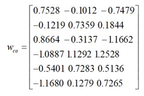 A partir de los entrenamientos realizados para cada tipo de gasolina, se determinaron los coeficientes óptimos de pesos w y los coeficientes bias b para la capa oculta (wco y bco) y para la capa de salida (wcs y bcs) en dada red elaborada. En lo adelante se muestran los valores correspondientes.
