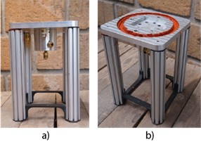 Para las tres piezas a maquinar restantes, se maquinaron bajo los procesos de fresado y torneado sin darles ningún acabado y cuyas piezas finales se apreciar en la Fig. 5. Una vez maquinadas las piezas se ensamblaron según el CAD. En este punto se decidió diseñar e imprimir la pieza de la Fig. 6 con el fin de añadir estabilidad a la base.