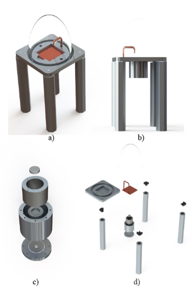 Abstract: This work will address the design of a small-scale machine for sputtering tanks (PVD) for student use. This from the generation and focusing of plasma in a controlled way in a vacuum system with the support of a high voltage system. Through this design it was possible to make a visible aluminum deposit on glass substrates during a simple round of tests. This type of system can open the doors to future projects in materials technology, as well as research in areas such as optics or tribology at the university level.
