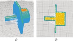 Para el proceso de maquinado se usaron tres métodos diferentes: fresado en centro de maquinado vertical, Torno e impresión 3D. La impresión 3D fue realizada utilizando PLA a una densidad del 20% manteniendo una geometría de impresión intercalada como se muestra en la Fig. 4.