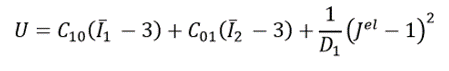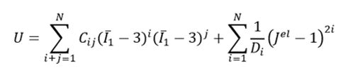 (5)Como se pueden observar en las ecuaciones, todos los modelos demuestran que el comportamiento hiperelasticidad se puede expresar en términos de la energía potencial de deformación, donde la cantidad de energía de deformación es almacenada por unidad de volumen [10].