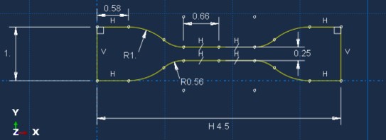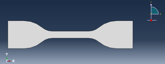 El modelado de la pieza se realizó de la siguiente forma, se crea el modelo de la probeta en 3D de acuerdo con las dimensiones de la norma ASTM D-412 como se muestra en la Fig. 5. Una vez creado el modelo, se asignan las propiedades del material obtenidos en los ensayos a tensión.