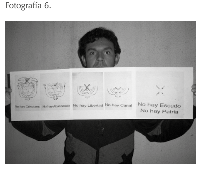 Estos resultados evidencian que no existe una concepción unificada sobre la identificación con la nación propia, y que, como en toda representación política y cultural existe una disputa entre distintos grupos y sectores sociales por imponer significados. El vínculo con proyectos colectivos que declaran algunos de estos jóvenes cristaliza un rechazo a discursos hegemónicos basados en filiaciones no conflictivas con el orden establecido, a la vez que hace explícita la imbricación entre identidad y política. Veamos al respecto la fotografía 3 y el relato correspondiente.