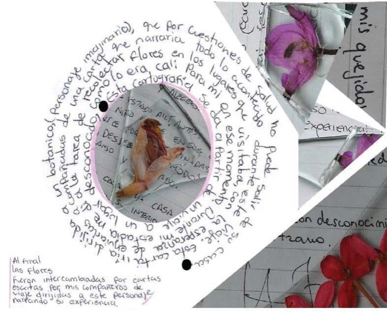En este sentido, la práctica artística cartográfica se convierte en una alternativa para resistir a la memoria histórica hegemónica, resignificando lo cotidiano y lo sencillo, abordando una memoria emergente desde lo político donde múltiples miradas del grupo recrean la ciudad y el espacio. Lo anterior puede ejemplificarse en apuestas sensibles como cartas a un botánico imaginario que nunca ha salido de su hogar y cuya única conexión con la realidad es aquello que le cuentan cuando le escriben, flores cristalizadas que le envían para que pueda apreciar las especies del lugar y anécdotas del día a día que lo invitan a formar parte de la memoria colectiva. Repasos de las huellas de la infancia, haber vivido y habitado la ciudad para volver después de muchos años y encontrarla transformada, despertando la memoria y comprendiendo por qué se construyen los recuerdos. Recoger retazos del camino, objetos encontrados, perdidos o robados que perdieron su vida útil en el tiempo para darles nuevos significados como una cartografía de anticuario. Realizar ejercicios autómatas de creación, revivir métodos surrealistas para crear imágenes del lugar que visitamos. Construir una bitácora de viaje, como un diario de campo de una antropóloga de antaño que toma nota de aquello que vive en el día a día, resaltando objetos y acciones para que no se pierdan en el archivo memorístico y examinando su trasegar en el camino. Construir puentes de sentido entre una nueva ciudad y la que habitamos normalmente, para comprender los conceptos comunes y las realidades lejanas, comparar cómo un ejercicio permite vincular nuestra experiencia del pasado con el paso por lo desconocido.