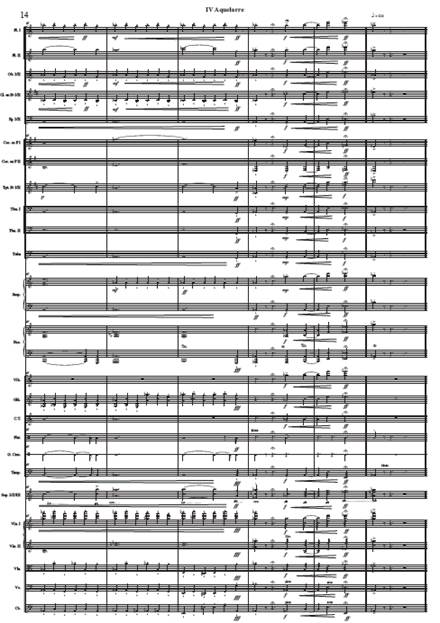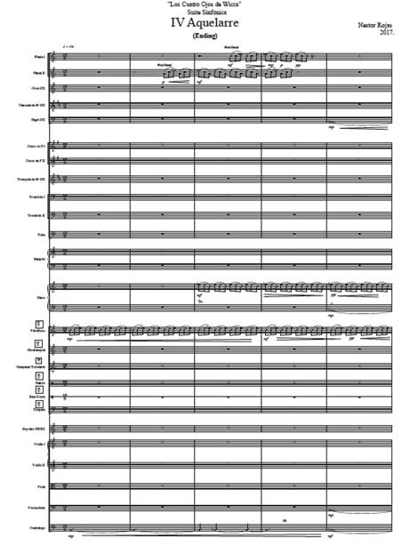 Como resultado de mi trabajo de grado para obtener el título de Magister en Música en el énfasis de composición con calificación de 5.0 en la Maestría en Música de la Pontificia Universidad Javeriana y la distinción de la misma como grado meritorio por decisión unánime de los cuatro jurados, nace la Suite para Orquesta Los Cuatro Ojos de Wicca, el cuarto movimiento de esta Suite, Aquelarre, será la obra para Orquesta Sinfónica que veremos a continuación.