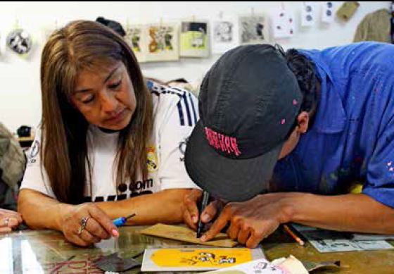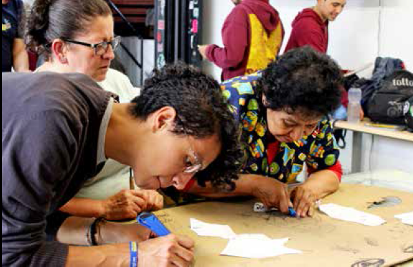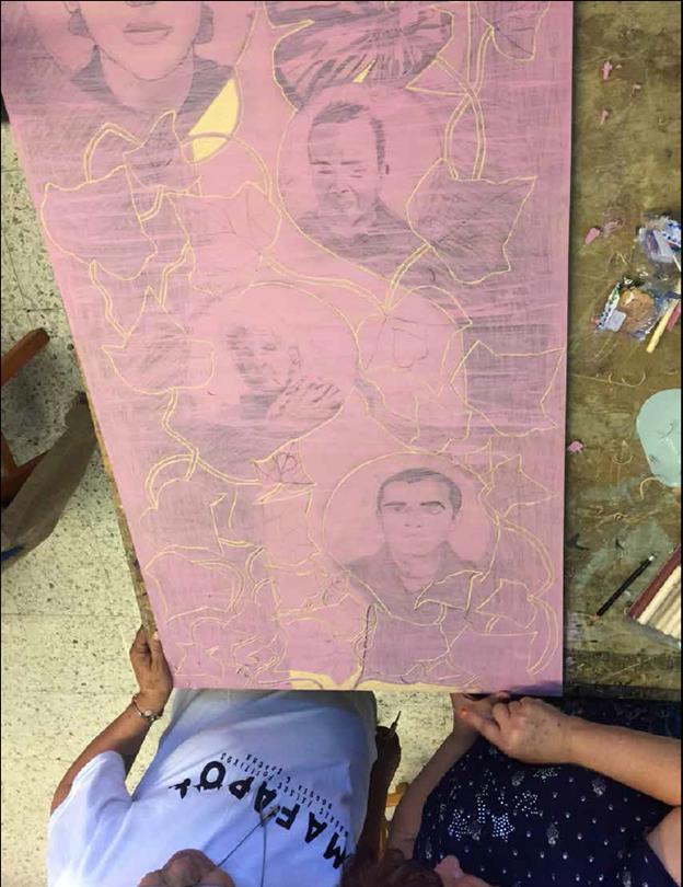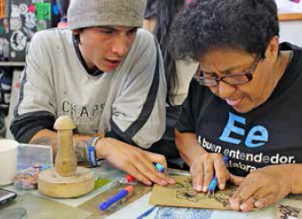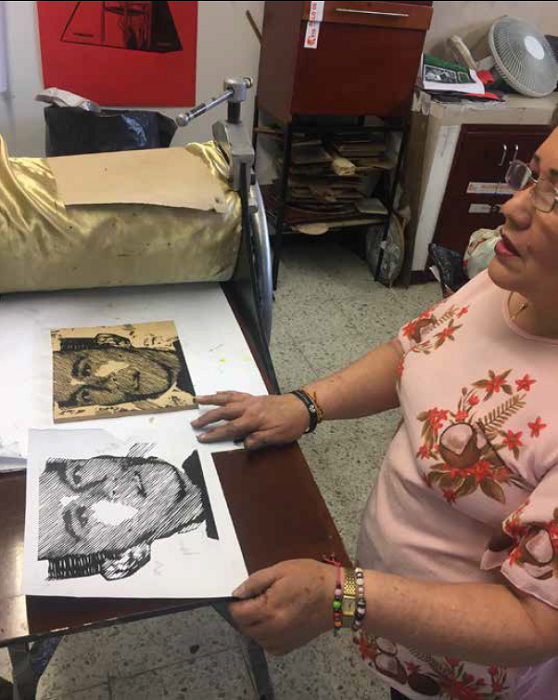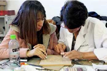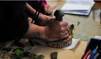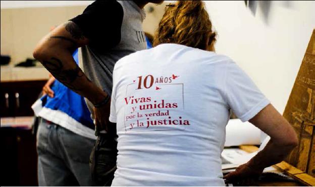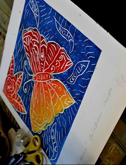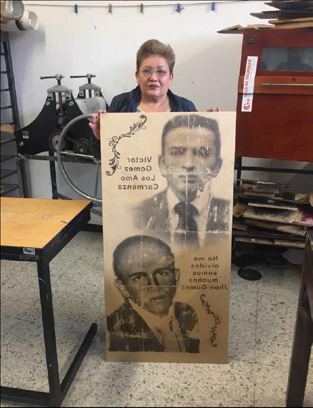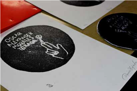 Key words: woodcut printing, historical memory, MAFAPO, false positive cases, creation labs.