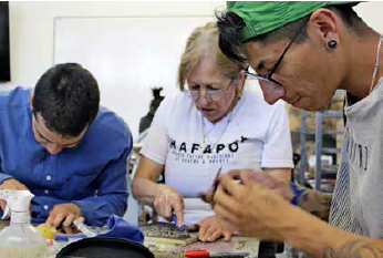 Enseñar a grabar no solo es instruir en el dominio de una técnica; es hacer del error maestro de la paciencia; es intentarlo una vez más y nunca darse por vencido; es aprender a hacer juntos, a ver de lejos y de cerca; es poner el corazón en cada trazo; es gritarle al mundo entero que la violencia se combate mejor con arte; que la paz siempre empieza en la imaginación y la reconciliación solo es posible en el respeto mutuo.