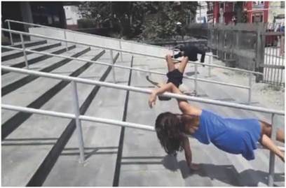 Luiza y yo empezamos a aprendernos los movimientos a través del video. Después de varias revisiones y repeticiones estábamos completamente mareadas, con ansias de vomitar, eruptando locamente. Eran los constantes movimientos del tronco y cabeza que nos desequilibraron. Allí la primera sabiduría me asaltó. ¿Cómo hablar de este asunto de la rutina, de las demandas externas, del cotidiano de las mujeres sin ansias de vomitar?