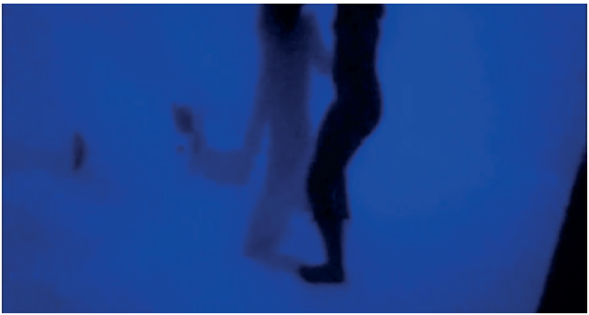 Pereira, T. (2019). Re-escenificación Momentos hostiles. Fotograma de video registro.