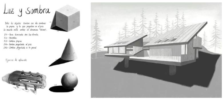 Así, este trabajo pone a prueba el dibujo e ilustración en tres situaciones sobre tabletas. En la primera, con una estrecha relación estudiante-docente, se reproducen los contenidos de representación del primer ciclo de forma ción de arquitectura y profesiones auxiliares, como ejer cicios de luz y sombra o perspectiva, de forma paralela a los estudiantes que están viendo el curso de manera tradi cional, por así decirlo. Aquí se evalúa la capacidad para cuestionar la realidad visible, además del desarrollo de habilidades manuales como precisión y dominio técnico. En la segunda, se indaga sobre los procesos de creación más abstractos, desde los dibujos libres en exteriores hasta los diagramas y bocetos para asignaturas de diseño y taller de proyectos, es decir, ideación y comunicación, donde es importante la fluidez entre la herramienta y las inten ciones del artista-estudiante-creador. Esta situación no está mediada por una relación vertical docente-estudiante, por el contrario, se busca una aproximación autónoma a la herramienta para comparar las acciones intuitivas entre los usuarios y familiarización con la interfaz. En tercer lugar, se recurre a encargos profesionales de representación y comunicación de proyectos de arquitectura y de arte, donde es crucial una síntesis de las habilidades anteriores y un propósito conceptual.