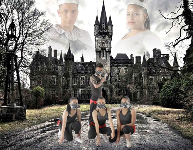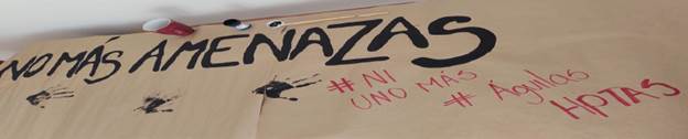 A propósito, el uso de la amenaza como forma de intimidación en el ambiente educativo es un recurso muy común, en especial en las zonas que son dominadas por fuerzas y colectivos al margen de la ley. Frente a estas situaciones de amenaza y vulnerabilidad, los jóvenes se organizan y crean formas estéticas para manifestarse y expresar: poemas, arengas, dibujos, imágenes, perfor mances, canciones, marchas, cartas, tomas estudiantiles, etc. Expresiones desde la corporalidad o que son corporeizadas y cargadas de significados (Véanse figuras 2 y 3). A conti nuación, un pequeño ejemplo de resistencia de los cuerpos ante formas de dominación experimentadas en el proyecto, en relación con una situación de amenaza colectiva hacia los maestros de la institución: