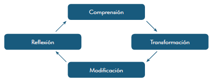 La experiencia es entendida en esta investigación como un conocimiento que se adquiere más allá del ejercicio profesional a lo largo del tiempo, la cual involucra la reflexión y alimenta cada uno de los componentes descritos anteriores a través de un ciclo que comprende cinco fases: