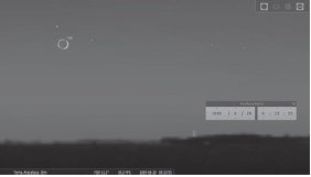 En miras de evidenciar las reacciones (actitudes, aptitudes y emociones) que generaba en los estudiantes el uso de los programas Stellarium y GeoGebra, se llevaron a cabo dos sesiones de acercamiento tanto al software GeoGebra como a Stellarium, para lo cual se propuso al grupo focal una exploración guiada de cada uno de los programas, y dos tareas orientadas a resaltar las potencialidades de los mismos. En Stellarium, se trabajaron las constelaciones visibles desde la ubicación geográfica de Bogotá y la simulación del eclipse de superluna del pasado 27 de septiembre del 2015, visible en Bogotá (figuras 6 y 7).