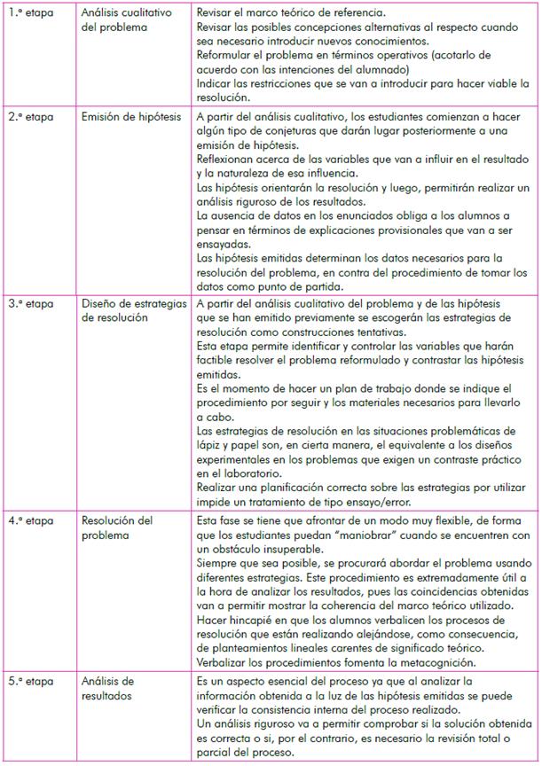 Algunos autores (Martínez-Aznar e Ibáñez Orcajo, 2005, 2006; Pavón Martínez y Martínez-Aznar, 2014; Rodríguez-Arteche y Martínez-Aznar, 201 6a, 201 6b) proponen como estrategia de indagación en el aula la metodología de resolución de problemas como investigación (MRPI) (Gil Pérez y Martínez Torregosa, 1983; Martínez Torregosa, 1994 y Ramírez Castro, Gil Pérez). Se fundamenta en la comparación entre cómo resuelven los científicos las situaciones problemáticas que se les presentan en sus investigaciones y el procedimiento que se debe utilizar en las clases de ciencias para que los estudiantes aprendan a resolver sus problemas escolares, favoreciendo así su formación (Martínez-Aznar y Varela Nieto, 2009).