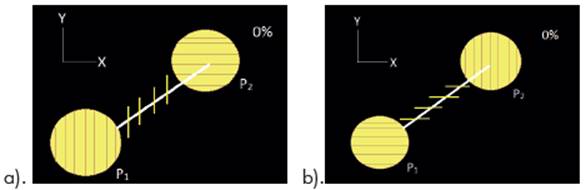 Para el caso en el que se percibe una atenuación total en la intensidad de la luz a través del segundo polarizador, se esquematiza como se muestra en la figura 10. Lo cual significa que un estado de polarización |y> no es un estado de polarización |x>, figura 10a. De igual forma, un estado de polarización |x> no es un estado de polarización |y>,figura 10b.