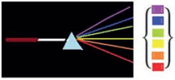 No obstante, considerando la luz visible como un haz de fotones, y además, suponiendo un solo fotón atravesando el prisma, se puede destacar en este una cualidad: el color, el cual caracteriza a cada fotón del espectro. La cualidad de color permite describir el fenómeno en torno al concepto de superposición de fotones de diferentes colores como se esquematiza en la figura 2.