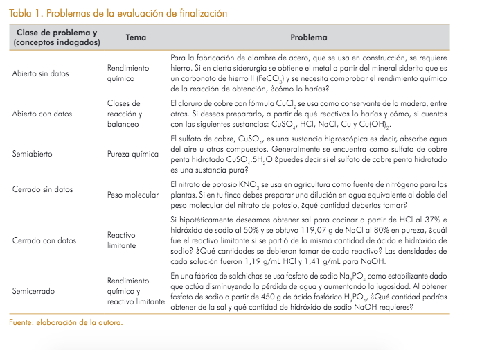 Una vez finalizada la aplicación de las estrategias didácticas se aplicó individualmente una evaluación de finalización donde las estudiantes podían consultar sus apuntes o anotaciones, puesto que no era una prueba de memoria sino que en ella la estudiante demostraba cómo manejaba la información disponible. La prueba consistió en seis problemas, uno de cada clase propuesta en este estudio.