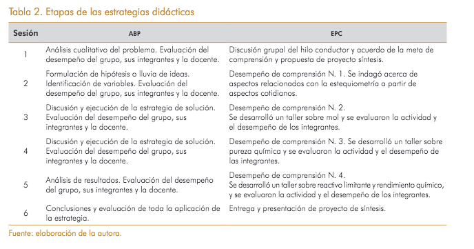 Los pasos seguidos en las dos estrategias didácticas se observan en la tabla 2.