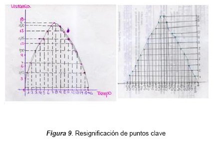 El uso de gráficas en intervalos y puntos clave permitió a los estudiantes reconocer que los puntos clave ayudan a que se rompa con la linealidad en los fenómenos que se presentan, y que no todos los fenómenos tienen comportamiento lineal. Los puntos clave les permiten visualizar cambios y, con estos, representar el comportamiento curvo del fenómeno. Los intervalos en las gráficas no solamente los usan para unir puntos, sino además para correlacionar el tiempo con la distancia o la altura a través de la cuadrícula, para establecer parejas ordenadas y también les ayudan a identificar los cambios que sufren los objetos en movimiento ya sean cualitativos o cuantitativos.