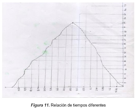 El estudiante reconoce que para valores de tiempo diferentes se repiten valores de distancia o altura, como se observa en la figura 11, correspondiente a la secuencia (1), pregunta 7. Allí crea una relación entre dos variables, en este caso tiempo y distancia; así muestra que para un mismo valor de distancia existen tiempos diferentes. Esto permite inferir que los intervalos junto a los puntos clave son importantes para romper con la creencia de que todo fenómeno se debe graficar en forma lineal.