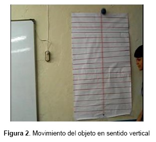En esta secuencia se presenta otra actividad también de movimiento, pero ahora en desplazamiento vertical: el lanzamiento de una pelota hacia arriba. La secuencia comienza presentando cómo sería el lanzamiento de la pelota (véase la figura 2). Para realizar el experimento se coloca un fondo especial con el fin de captar con mayor nitidez el movimiento del objeto lanzado. Para el análisis del fenómeno de lanzamiento vertical se utilizará el software Tracker-310 y el software Modellus, programas de libre acceso que ayudan a realizar modelaciones de este tipo de situaciones de movimiento.
