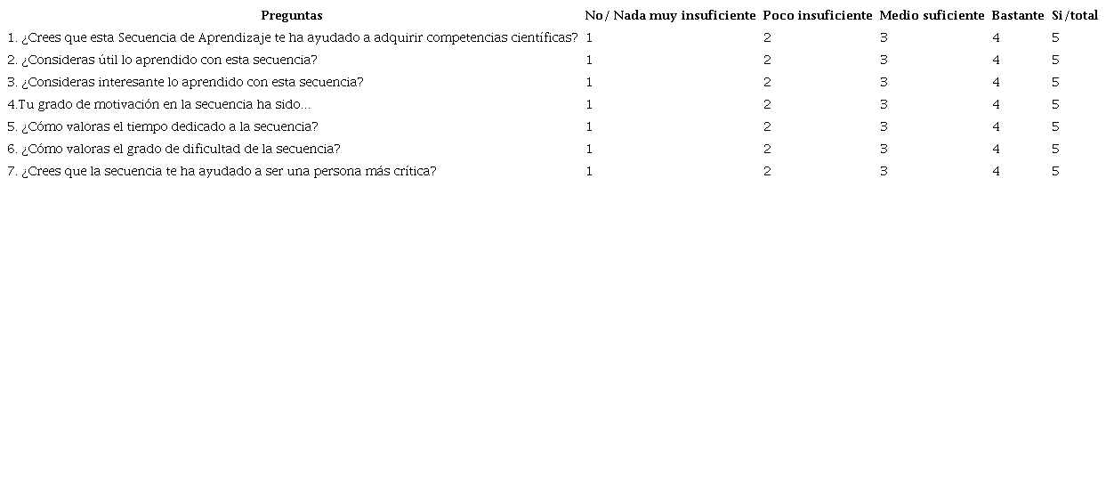 Estos resultados podrían ser indicio de que, además de contribuir al desarrollo del PC y a la adquisición de contenidos CTS, la SD logró fomentar en el estudiantado habilidades, procedimientos y conocimientos sobre la prevención de ETA en aspectos de la vida cotidiana, ya que muchas de las situaciones presentadas en el test disciplinar son actividades de rutina hogareñas.