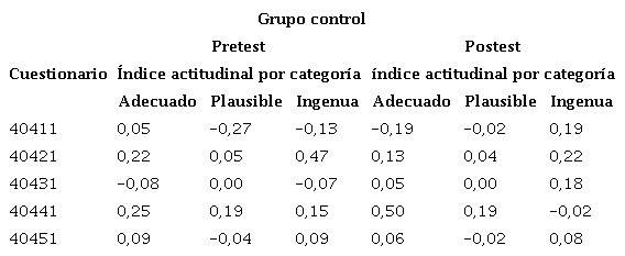 Asimismo, se obtuvieron los índices actitudinales por categoría que se representan en las tablas 5 y 6.