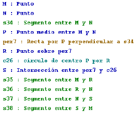 Aparentemente, el estudiante busca verificar las condiciones necesarias para el HG: MN debe ser perpendicular a RS y debe pasar por el punto medio de RS. Pero sorprendentemente no logra concluir que MN es perpendicular a RS, a pesar de que ya ha afirmado que RS es perpendicular a MN.