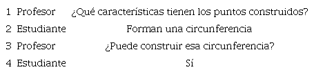 Cuando los estudiantes reconozcan que los puntos construidos parecen estar sobre una circunferencia, el profesor les pide que construyan esa circunferencia sobre los puntos.