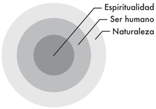 Lo ontológico: la unidad espiritualidad, ser humano, naturaleza, (Moe, Kome, Monifue)
