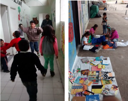 Además de eso, esas propuestas populares propician las facilidades desde las bases sociales capacitando a docentes e, incluso, a padres y madres de familia, especialmente, mediadores a través de programas como «Formando formadores» promovidos por Mariamulata Lectora, que facilitan la materialización de relevos generacionales para prevenir declives nefastos en los procesos. Igualmente, la creatividad por parte de experiencias, como Bibliomula, Biblioburro, Centro Transdisciplinario Poesía y Trayecto A. C., y la Carreta Biblioteca, por su carácter ambulante e itinerante. Cabe pensarse ¿cómo ingeniarse de forma recursiva y particular para llevar los libros a los lugares más recónditos en un contexto rural, urbano o en espacios no formales de educación como las plazas de mercado?; con el fin de que sean más las personas que accedan a las propuestas construidas desde los contextos locales. Pues los pocos o muchos esfuerzos que hacen los estados son paupérrimos o no son suficientes, ya que una de las constantes es que estos trabajos de base nacen por la ausencia de los estados respecto de las responsabilidades que le competen en cuanto a la democratización del conocimiento a través de políticas públicas con programas de lectura, especialmente, para las comunidades populares. En este sentido, estas reflexiones y prácticas demandan grupos de trabajo interdisciplinares que respondan a las generalidades y particularidades de los trabajos comunitarios como el grupo de niños del salón de la plaza de mercado del sur de Tunja.