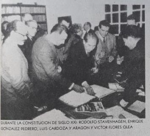 La historia que sigue ya no pertenece al Fondo, sino a la editorial Siglo XXI. Sin embargo, sin la historia previa no se explica el origen de la historia nueva: ese mismo lunes, como a las ocho de la noche y sin aviso de ninguna índole, comenzaron a llegar a mi departamento algunos amigos –creo que sumaron como 40 o 50. De entre los enojos y los entusiasmos surgió una propuesta: hacer una nueva editorial. Se sugirieron varios nombres y, finalmente se aceptó uno que yo había concebido para una revista que pensaba publicar a partir de 1966: Siglo XXI.