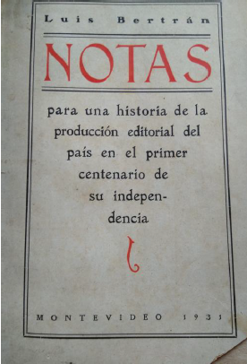 En ese contexto Luis Bertrán va a publicar el 15 de abril de 1931 su trabajo titulado: Notas para una historia de la producción editorial del país en el primer centenario de su independencia. Bertrán, periodista, traductor e incipiente editor da a conocer un librillo de pequeñas dimensiones en una tirada especial de doscientos ejemplares, hechos en la Imprenta Uruguaya, de la calle Cerrito y Juncal.