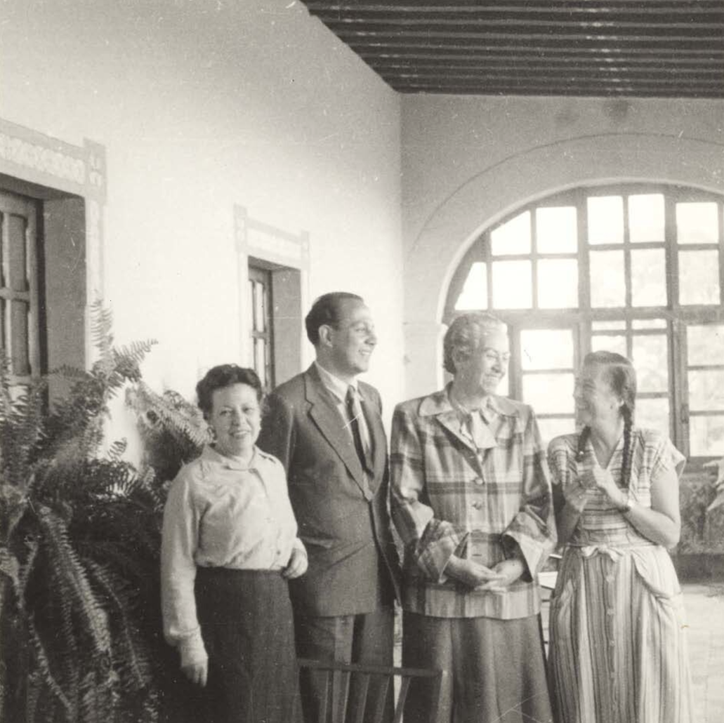 Gabriela Mistral, Palma Guillén, la republicana Candelaria Escolá y su esposo Jaime Tarradés Barrera en El Lencero, Xalapa, c. 1948