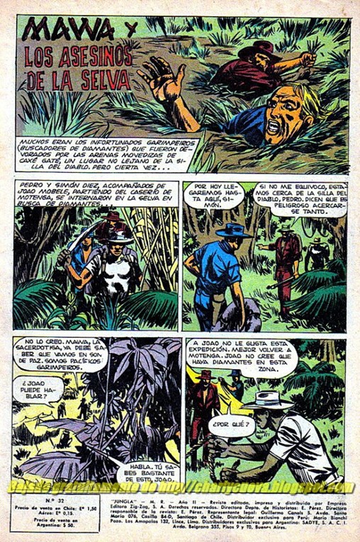 Marino, Juan (1968). Mawa y los asesinos de la selva. Revista Jungla 32. Ed. Zig-Zag.