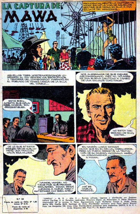 Marino, Juan (1968). La captura de Mawa. Revista Jungla 34. Ed. Zig-Zag.