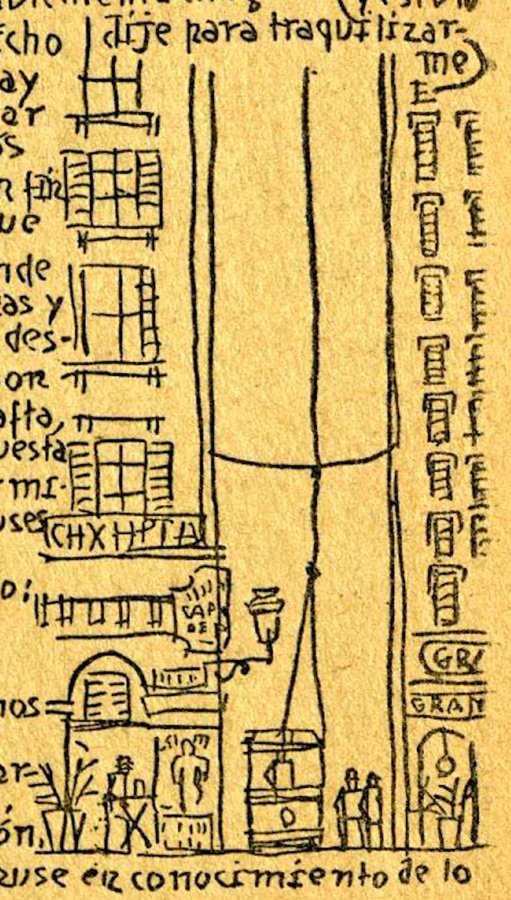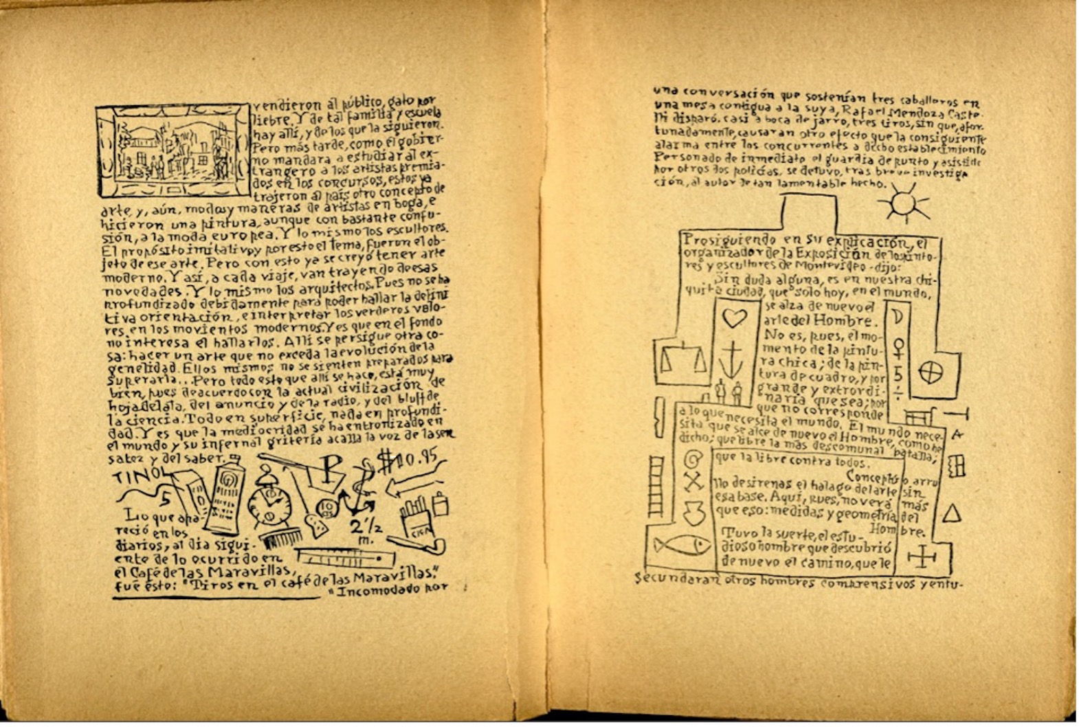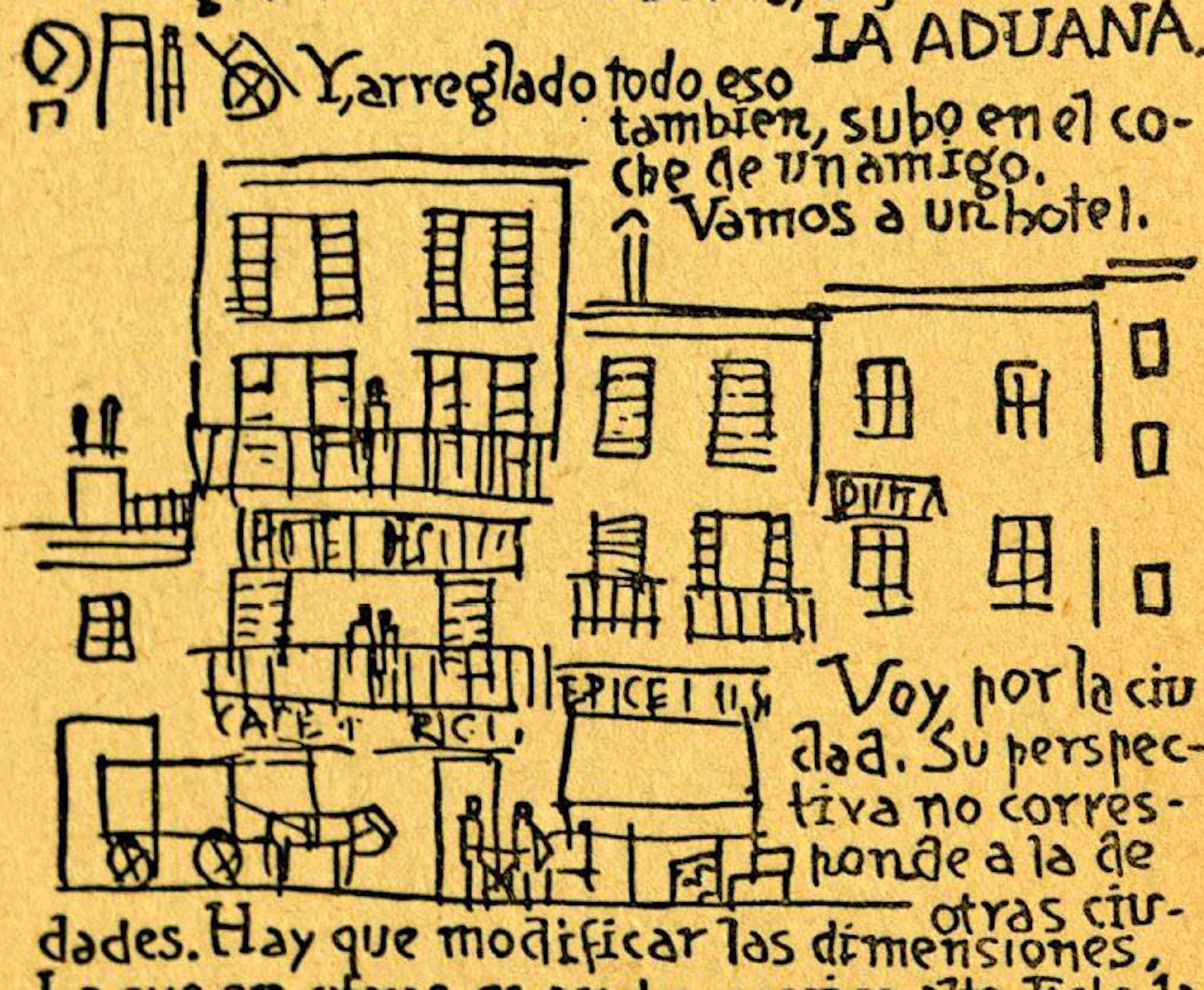 A mí propiamente no debería ocurrírseme ni preocuparme de cómo se podrá entender y leer cuánto escribo [palabra ilegible] en medio de textos y de dibujos en que el ojo va leyendo de izquierda a derecha y mira los dibujos, no precisamente ni de arriba a abajo ―o viceversa― ni de izquierda a derecha ―o viceversa; tampoco de este donde sale el sol ―a oeste ―donde se pone. Y la ocurrencia es la siguiente: el que hace la edición ―el gráfico― bien se comprende y no el lector cualquiera realiza un trabajo. Será, por cierto, simple, vale decir unitario, unicista [sic].