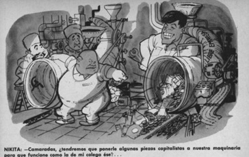 En la figura 4, puede apreciarse un Kruschev con un apetito voraz por engullir a los países del Tercer Mundo. Es un personaje peligroso con una actitud belicista que no ofrece nada más que subordinación. La URSS es, de esta manera, un país con una ambición imperialista sin límites y deshonesto, por lo tanto, se perfila como una potencia peligrosa en la cual no se puede confiar.