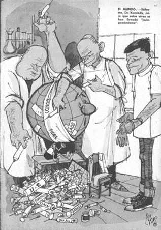 En este sentido, Westad sostiene que “Después de la Revolución cubana, ningún otro acontecimiento situó más a América Latina en el contexto de la Guerra Fría que el golpe de Estado de 1973 en Chile”18. De esta forma, se entiende que el proceso revolucionario liderado por Fidel Castro generó un punto de inflexión para la región. Sin desconocer su importancia, el trabajo busca focalizar en otros aspectos diferentes al proceso cubano, el cual ya ha sido analizado parcialmente a partir de las caricaturas por Hermosilla19 y otros.